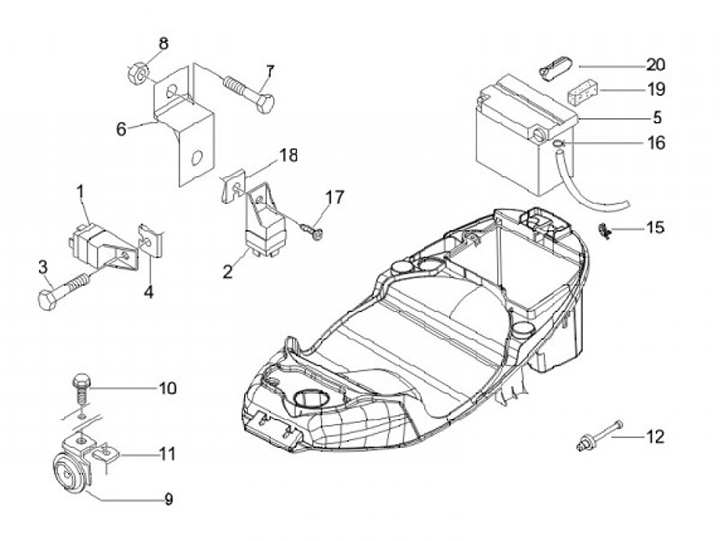 Pulsador arranque - batería - claxón