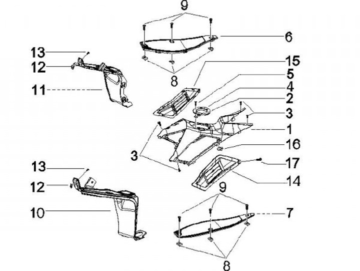 Revestimiento interior del protector de piernas trasero -GILERA- Runner (a partir de 2006) (ZAPC461, ZAPC462, ZAPM461, ZAPM462, ZAPM463, ZAPM464) - Negro