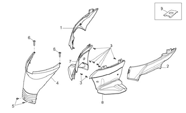 Panel lateral izquierdo central -PIAGGIO- Nuevo TPH (a partir de 2010) (LBMC501, LBMM701, ZAPM501), Aprilia Sport City One (ZD4SB, ZD4SG)