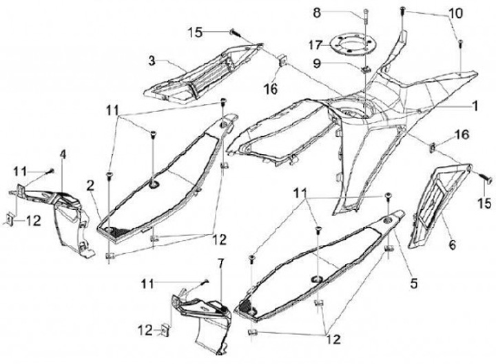 Revestimiento interior del protector de piernas trasero -GILERA- Runner (a partir de 2006) (ZAPC461, ZAPC462, ZAPM461, ZAPM462, ZAPM463, ZAPM464) - Negro