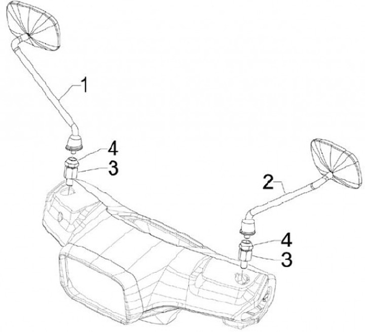 Portaespejos -PIAGGIO- Vespa S 50-150, Piaggio NRG Power Purejet 50, Gilera Runner 50 SP, Runner VX 125, Runner VXR 200 - Rosca M8 derecha