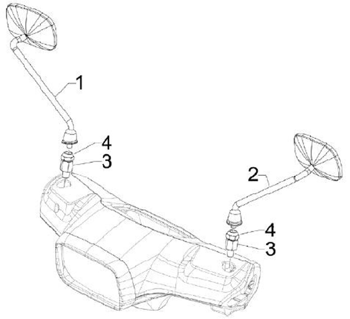 Portaespejos -PIAGGIO- Vespa S 50-150, Piaggio NRG Power Purejet 50, Gilera Runner 50 SP, Runner VX 125, Runner VXR 200 - Rosca M8 derecha