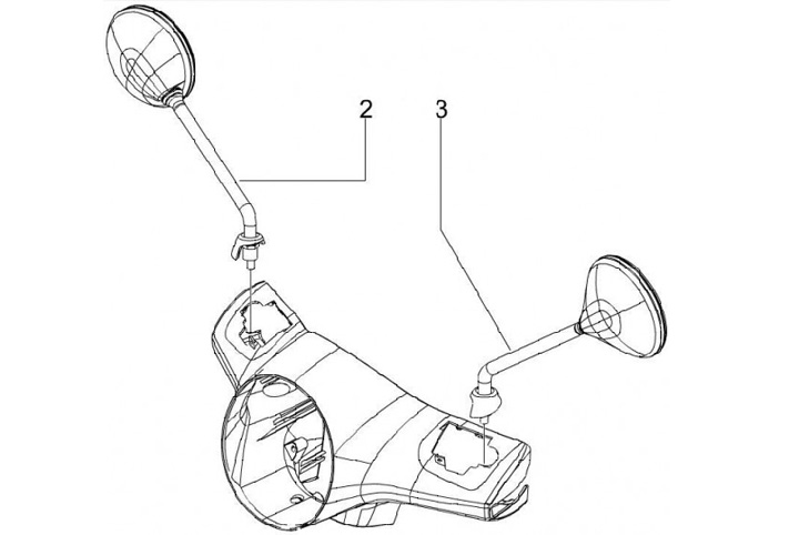 Espejo izquierdo -PIAGGIO- Vespa GT L 125 (ZAPM31101), Vespa GTS 125 (ZAPM31300), Vespa GTS 250 (ZAPM45100, ZAPM45101), Vespa GTS 300 (ZAPM45200, ZAPM45202), Vespa GTS Super 125 (ZAPM45300), Vespa GTS Super 300 (ZAPM45200, ZAPM45202)