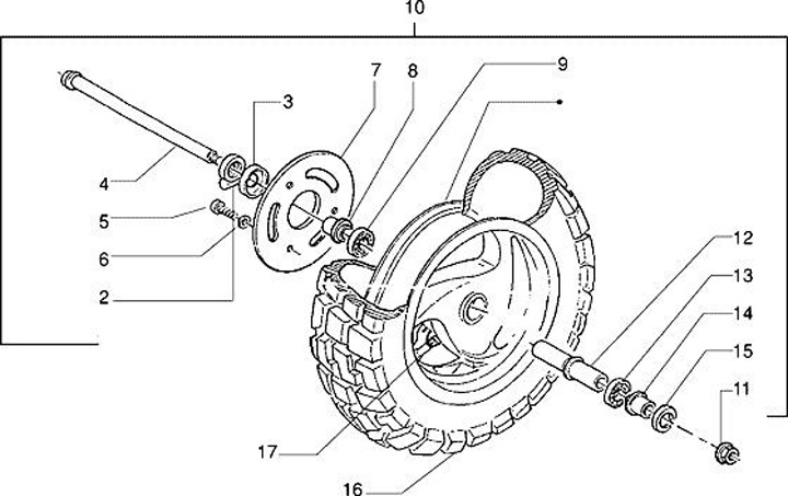 Eje delantero -PIAGGIO- Piaggio NRG (hasta el año 1996 - SAL1T), NTT (hasta el año 1996 - SAL1T), Storm (hasta el año 1996 - TEC1T), TPH (hasta el año 1996 - TEC1T)