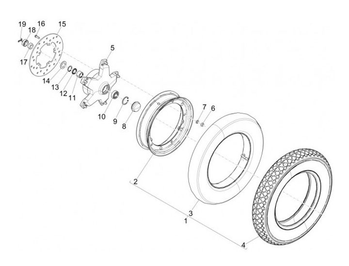 Tuerca de la rueda delantera -PIAGGIO- Vespa PX (a partir de 1984), PK XL, Cosa, ET2, ET4, GT125, GTL, GTS125, GTV, LX, LXV, S, Gilera Fuoco, Piaggio Hexagon, Hexagon GT-GTX, MP3, Quartz, Sfera Sfera RST, SKR, Zip SP