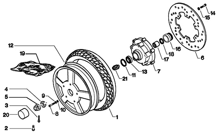 Tuerca de la rueda delantera -PIAGGIO- Vespa PX (a partir de 1984), PK XL, Cosa, ET2, ET4, GT125, GTL, GTS125, GTV, LX, LXV, S, Gilera Fuoco, Piaggio Hexagon, Hexagon GT-GTX, MP3, Quartz, Sfera Sfera RST, SKR, Zip SP