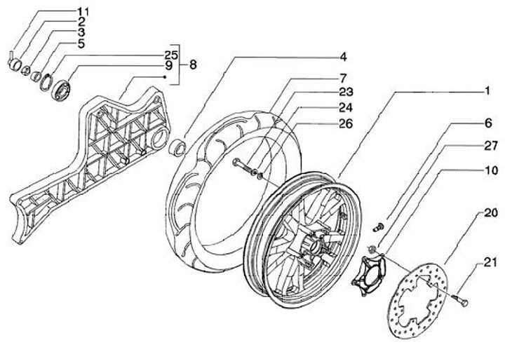 Buje rueda trasera -PIAGGIO- Gilera Nexus