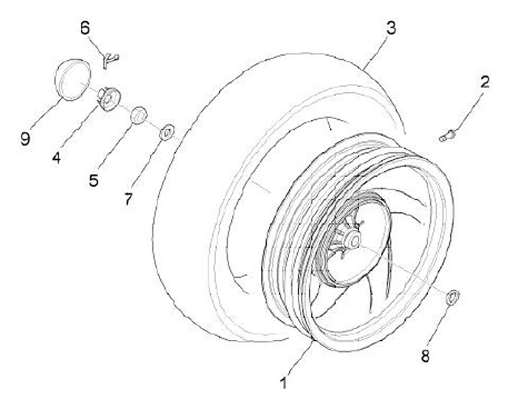 Tuerca rueda trasera -PIAGGIO- Vespa PX (a partir de 1984), T5 125cc, PK XL, Cosa, Piaggio automática, Gilera automática