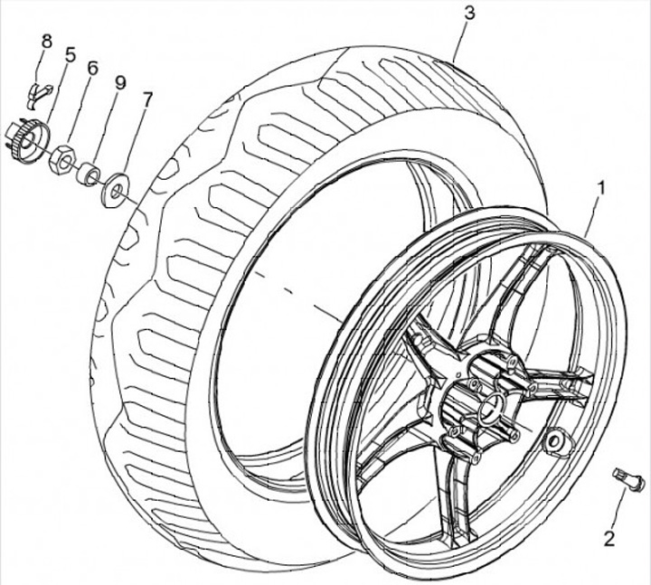 Tuerca de la rueda trasera -PIAGGIO- Vespa PX (a partir de 1984), PK XL, Cosa, Piaggio automática, Gilera automática