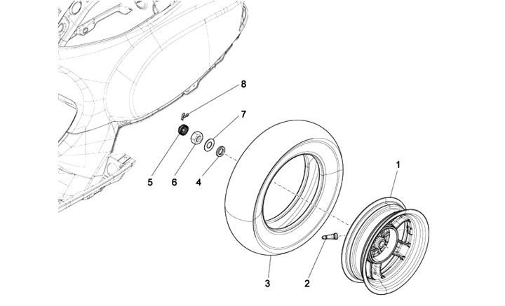 Tuerca de la rueda trasera -PIAGGIO- Vespa PX (a partir de 1984), PK XL, Cosa, Piaggio automática, Gilera automática