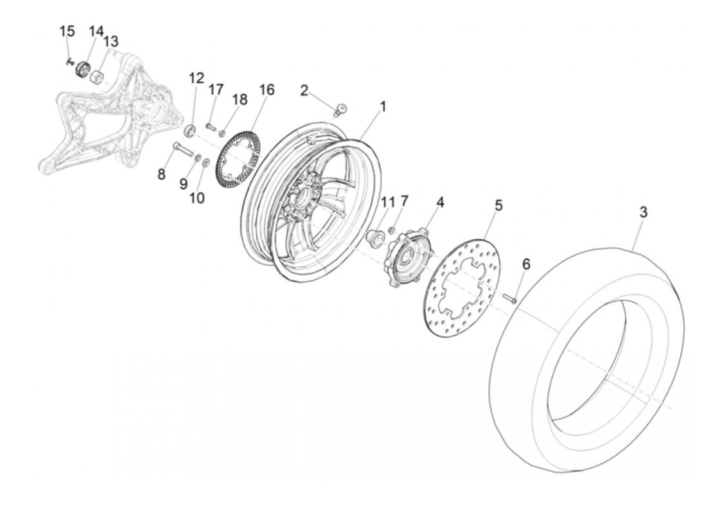 Distanciador en llanta para anillo ABS -PIAGGIO- Vespa GT, GTL, GTS, GTV 125-300cc - con ABS - trasero (se necesitan 5x)
