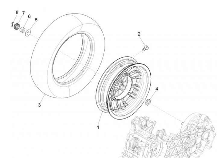 Tuerca rueda trasera -PIAGGIO- Vespa PX (a partir de 1984), T5 125cc, PK XL, Cosa, Piaggio automática, Gilera automática