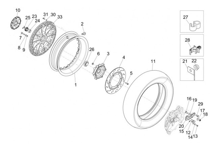 Tuerca de la rueda trasera -PIAGGIO- Vespa PX (a partir de 1984), PK XL, Cosa, Piaggio automática, Gilera automática