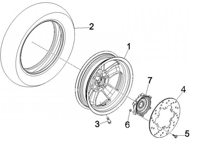 Llanta -PIAGGIO GTS125-300 - plata, (3.00x12) - 5 radios - adecuada para Vespa GT, GTL, GTS, GTV 125-300cc - delantera (todos los años) y trasera (2014-2016)