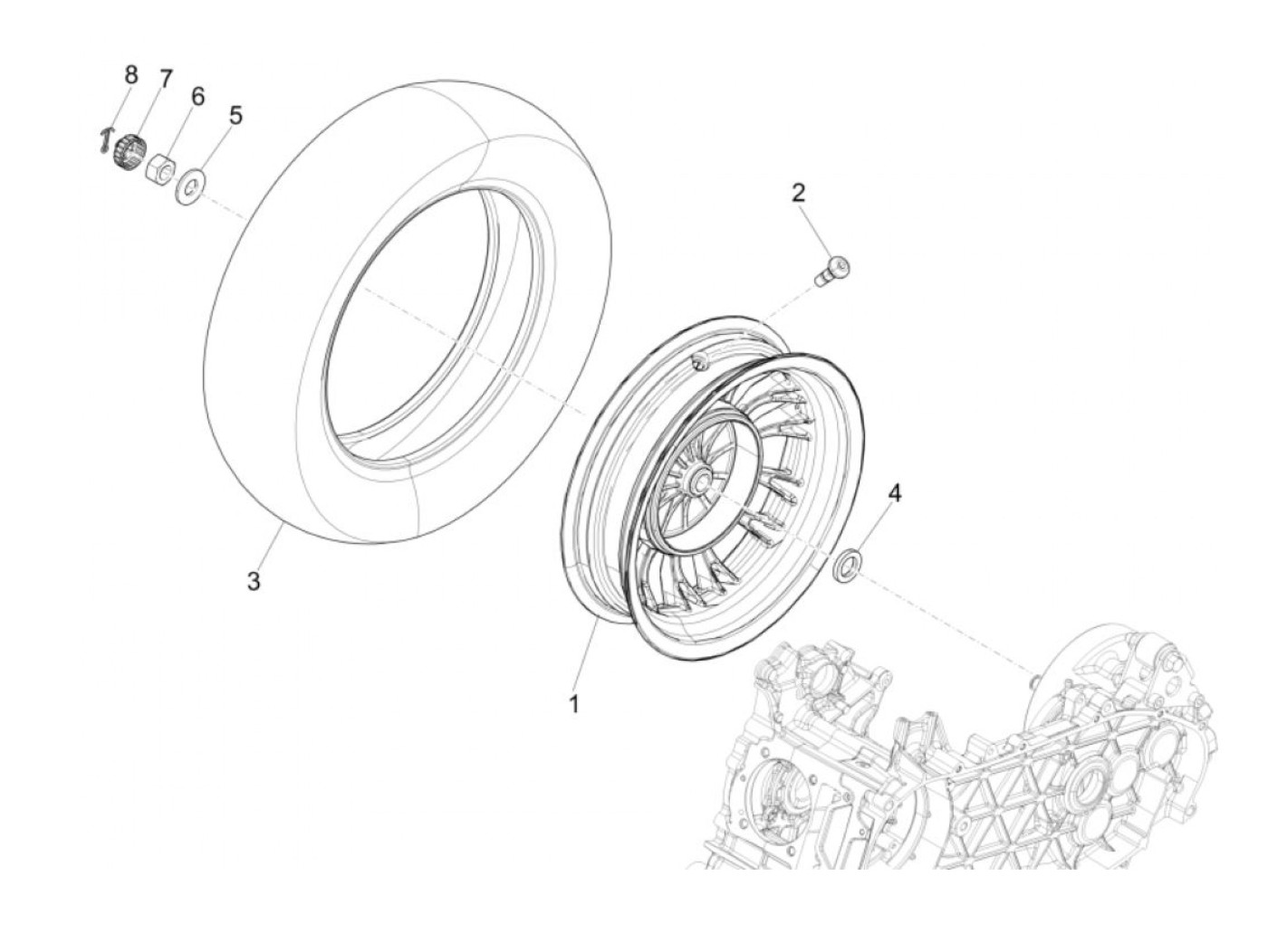 Tuerca de rueda trasera -PIAGGIO- Vespa Primavera 125 (ZAPMA1100, ZAPMA1101, ZAPMD1100), Vespa Primavera 150 (ZAPMA1201, ZAPMA1200, ZAPMD120), Vespa Primavera 50 (ZAPCA0102, ZAPCA0100, ZAPCD020, ZAPCD010), Vespa Sprint 125 (ZAPMA1300, ZAPMA1301, ZAPMD1101