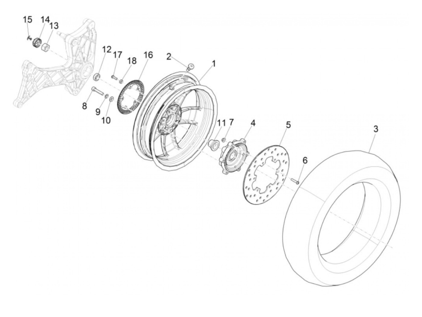 Distanciador en llanta para anillo ABS -PIAGGIO- Vespa GT, GTL, GTS, GTV 125-300cc - con ABS - trasero (se necesitan 5x)