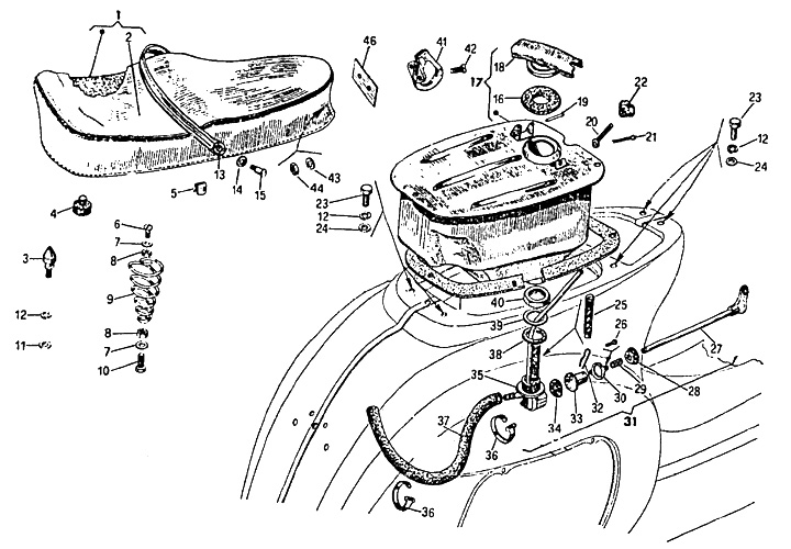Asiento banqueta muelle -PIAGGIO- Vespa PV 125, V50, ET3, PK, PK S, PK S Lusso, PX, Rally, Sprint, TS