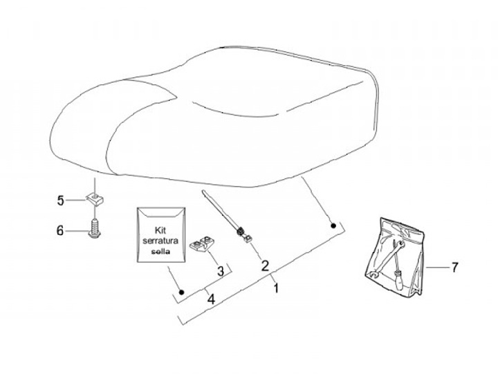 Guía de bloqueo del asiento -PIAGGIO- Vespa LX 50-150, LXV 50-125, S 50-150, VX 150, VXL 125-150, Piaggio Beverly 125-250, Fly 50-150, Liberty 50-200, TPH 50-125, Aprilia Sport City 50-125