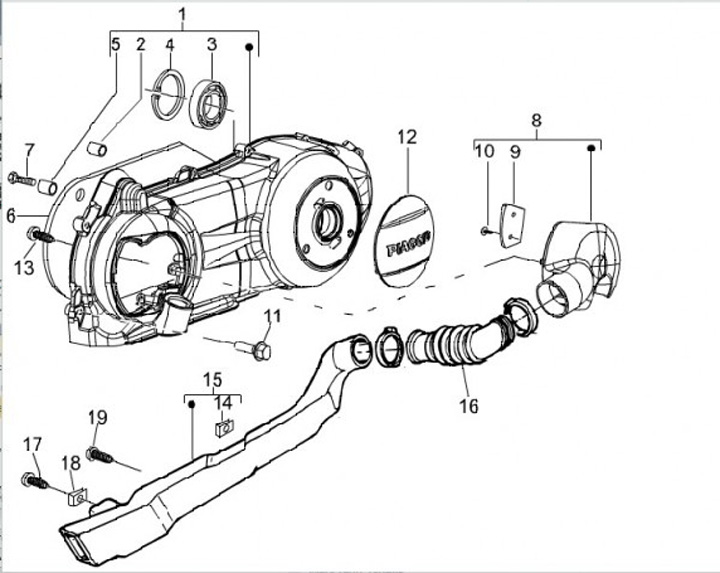 Deflector de aire para la tapa del variador -PIAGGIO- Vespa GT 250 (ZAPM45102), Vespa GT L 200 (ZAPM31200), Vespa GTS 250 (ZAPM45100, ZAPM45101), Vespa GTS 300 (ZAPM45200, ZAPM45202, ZAPMA3300), Vespa GTS Super 300 (ZAPM45200, ZAPM45202, ZAPMA3300), Vespa