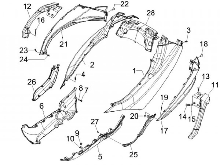 Spoiler derecho -PIAGGIO- Gilera Fuoco - sin pintar (--)