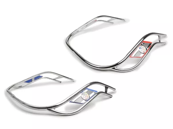 Tubo doble ranurado cromado para todos los modelos Vespa Sprint, Rally, GL con emblema AMS Cuppini de color