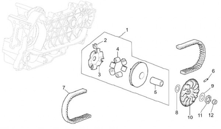 Variomatic -PIAGGIO- Vespa LX 125 (ZAPM44100, ZAPM44300, ZAPM68100), Vespa LXV 125 (ZAPM68102, ZAPM44301), Vespa S 125 (ZAPM44302, ZAPM68101), Vespa ET4 125 (ZAPM19000), Aprilia Mojito 125 (ZD4RY, ZD4SZA00), Aprilia Scarabeo 125 (ZD4RB000, ZD4RBB00), Apri