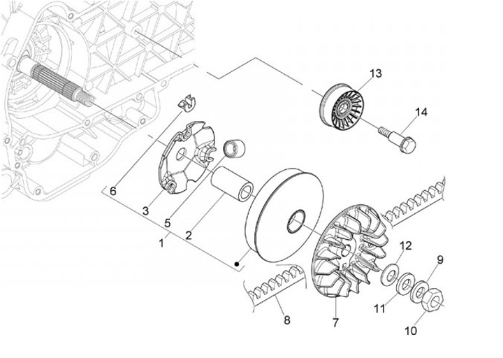 Polea fija -PIAGGIO- Vespa GT 250, GTS 250, GTS 300, GTS Super 300, GTS Super Sport 300, GTV 250, GTV 300, Aprilia Atlantic 250, Atlantic 300, Scarabeo 250, Scarabeo 300, Sport City 250, Sport City Cube 250, Sport City Cube 300, Sport City Street