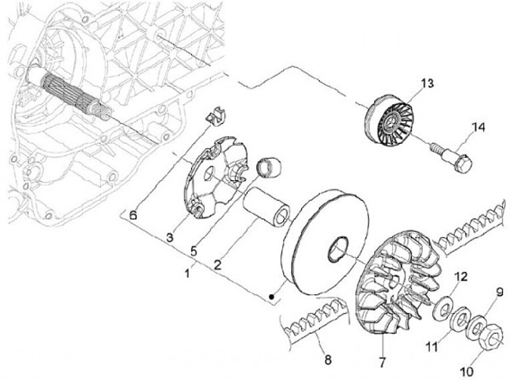 Variador -PIAGGIO- Vespa GT 250 (ZAPM45102), Vespa GTS 250 (ZAPM45100, ZAPM45101), Vespa GTV 250 (ZAPM45102), Aprilia Atlantic 250 (ZD4SPB), Aprilia Scarabeo 250 (ZD4TDB, ZD4TDC), Aprilia Sport City 250 (ZD4VBB00), Aprilia Sport City Cube 250 (ZD4VBH),
