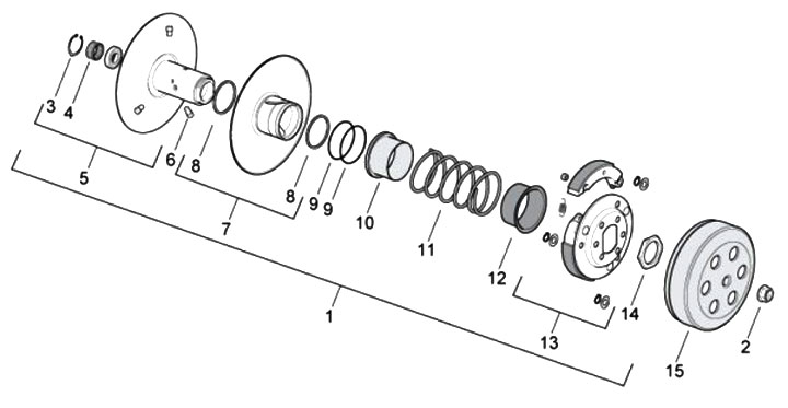 Embrague -PIAGGIO- Vespa Primavera 50 (ZAPC53200), Vespa Sprint 50 (ZAPC53201, ZAPC53301, ZAPC53303), Gilera DNA 50 (ZAPC27000), Gilera Runner 50 (ZAPC14000, ZAPC36100, ZAPC36200, ZAPC36400, ZAPC46100, ZAPC46200, ZAPC46300), Gilera Storm 50 (ZAPC29000), P