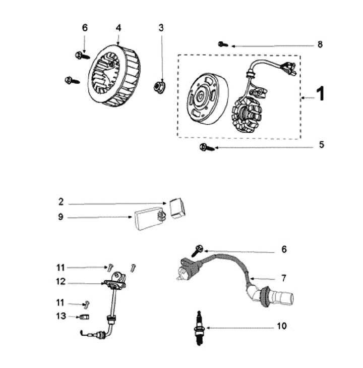 Allumage -QUALITÉ OEM stator- GY6 (4 temps) 50cc (139QMA/B) - type 2