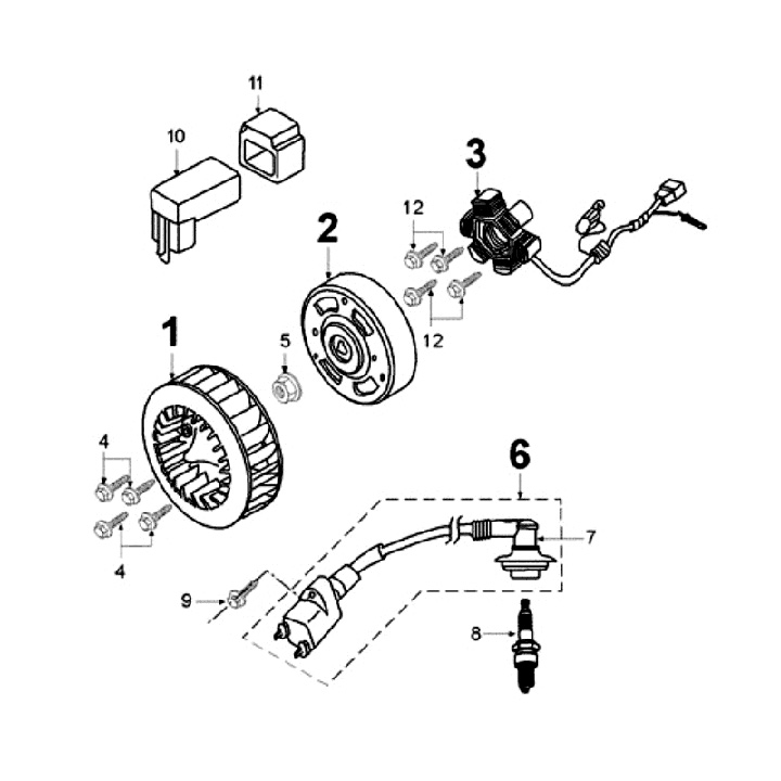 Allumage -QUALITÉ OEM stator- Peugeot 50-100cc (modèles sans immobilisateur) - SPEEDFIGHT1 50 cc, SPEEDFIGHT2 50 cc, XFIGHT50, BUXY50, ELYSEO50, ELYSTAR50, LOOXOR50, METALX50, SPEEDAKE, SQUAB50, SV50, TKR50, TREKKER50, VIVACITY50, ZENITH50
