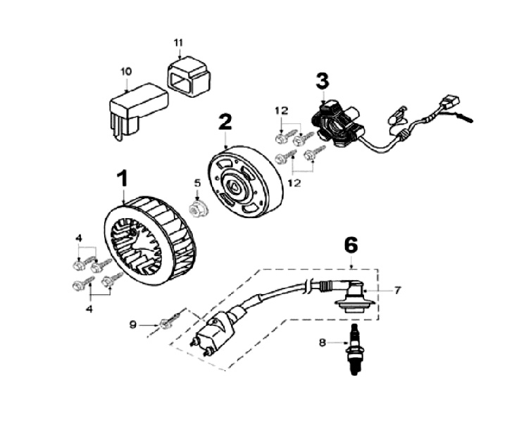Allumage -QUALITÉ OEM stator- Peugeot 50-100cc (modèles sans immobilisateur) - SPEEDFIGHT1 50 cc, SPEEDFIGHT2 50 cc, XFIGHT50, BUXY50, ELYSEO50, ELYSTAR50, LOOXOR50, METALX50, SPEEDAKE, SQUAB50, SV50, TKR50, TREKKER50, VIVACITY50, ZENITH50