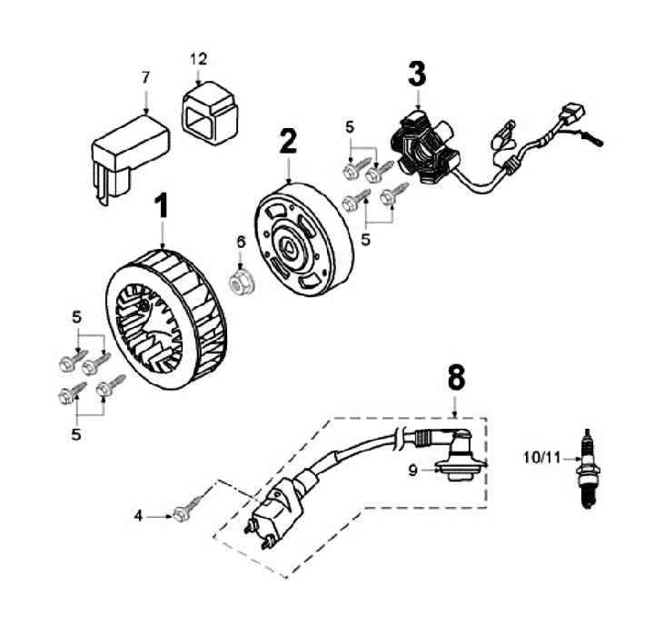 Allumage -QUALITÉ OEM stator- Peugeot 50-100cc (modèles sans immobilisateur) - SPEEDFIGHT1 50 cc, SPEEDFIGHT2 50 cc, XFIGHT50, BUXY50, ELYSEO50, ELYSTAR50, LOOXOR50, METALX50, SPEEDAKE, SQUAB50, SV50, TKR50, TREKKER50, VIVACITY50, ZENITH50