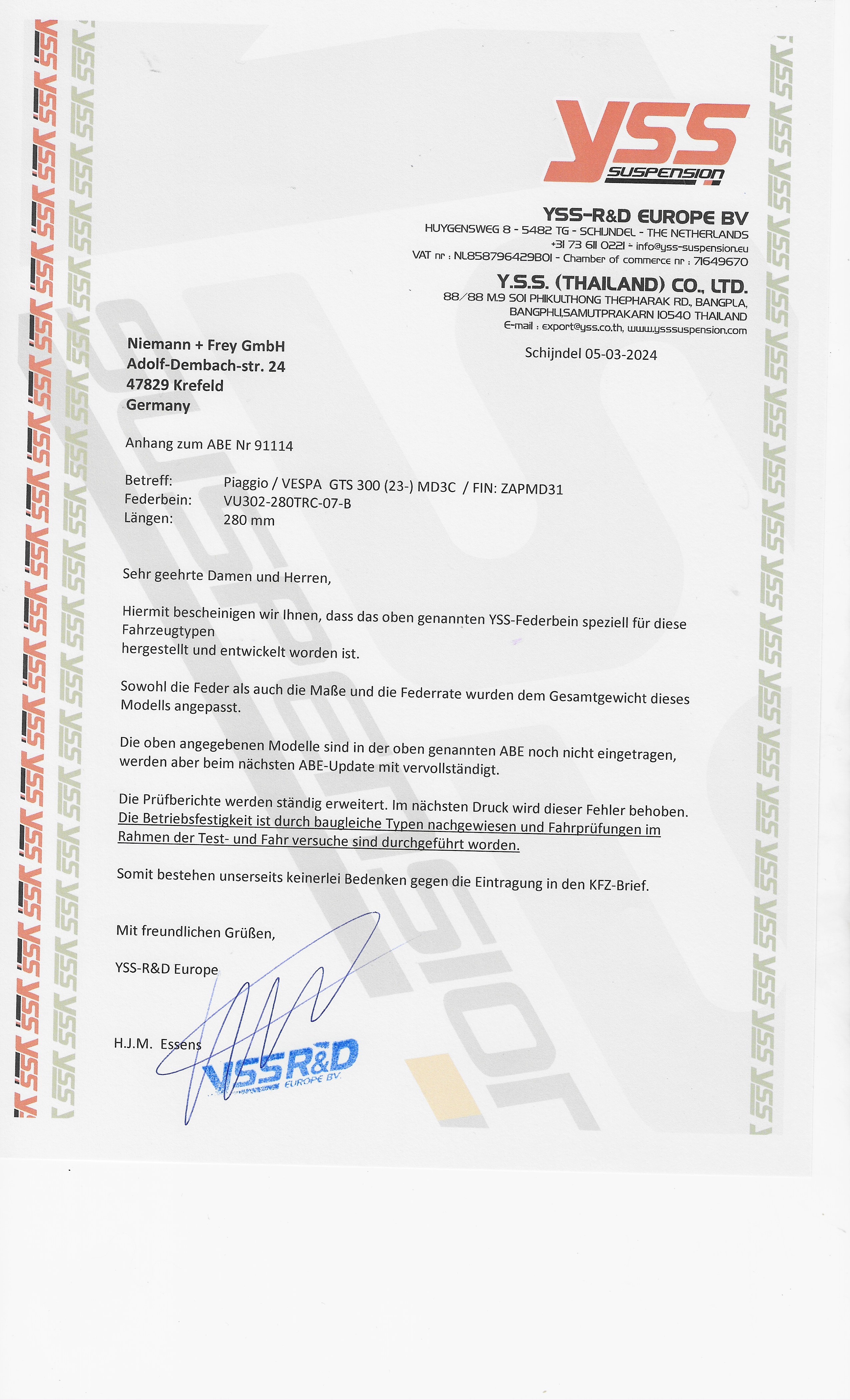 La raideur du ressort de cet amortisseur YSS Premium est spécialement adaptée aux modèles Vespa, une adaptation propre de la détente et de la compression est possible pour chaque conducteur et chaque parcours grâce aux multiples possibilités de réglage séparées.