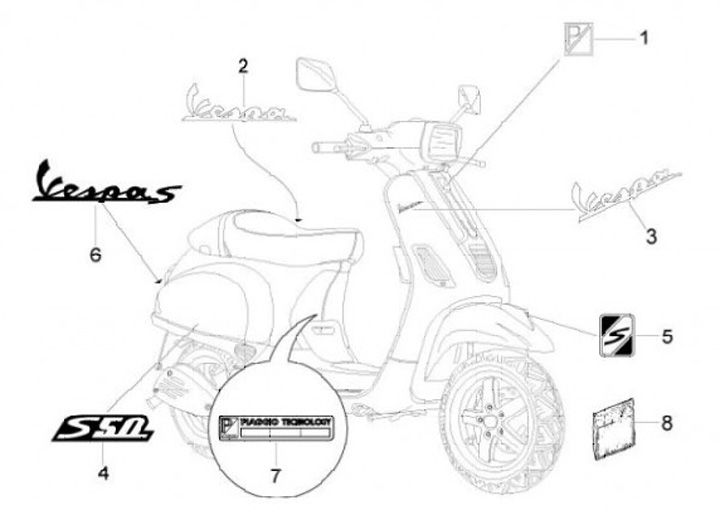 Badge de chassis arrière -PIAGGIO- Vespa S- Vespa S 50-125