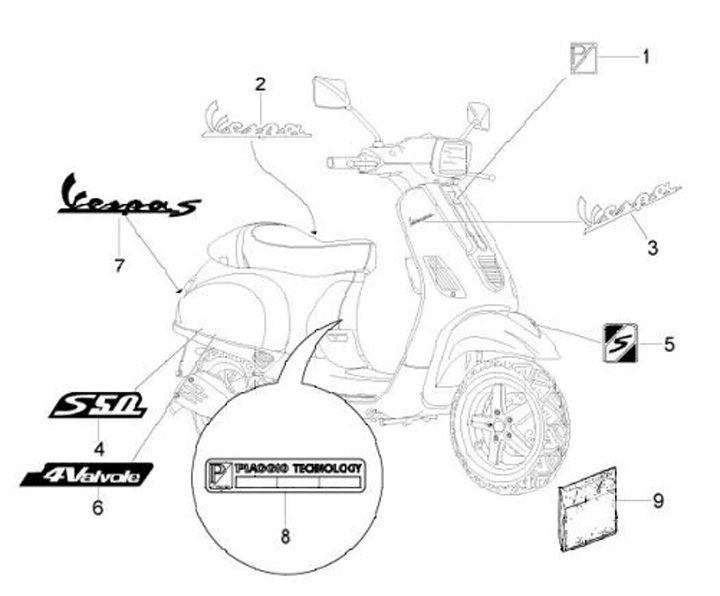 Badge de chassis arrière -PIAGGIO- Vespa S- Vespa S 50-125
