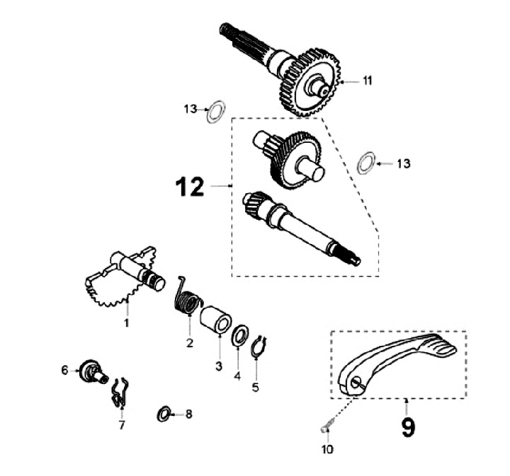 Getriebe, Kickstarter (gerade)