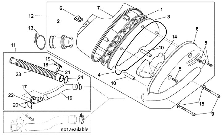 Boîte à air -PIAGGIO- Aprilia SR50 (moteur Suzuki, ZD4RLA), SR50 (moteur Piaggio, ZD4TEA, ZD4VFD00), SR50 DiTech (moteur Suzuki, ZD4RLB, ZD4RLE), SR50 DiTech (moteur Piaggio, ZD4RLD, ZD4TE0)