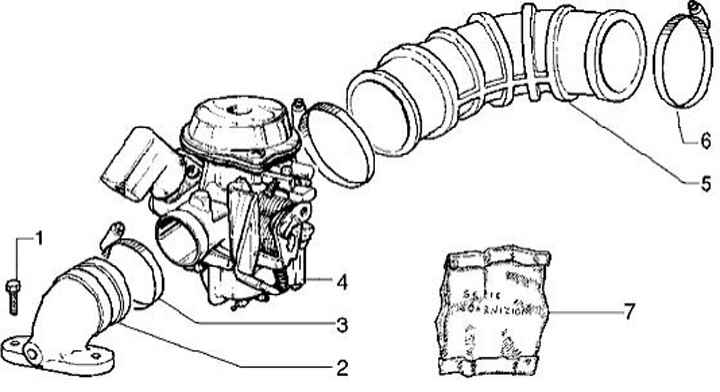 Collecteur d'admission -POLINI- Piaggio 125-150 4T 2V AC- (1ère génération / pre Leader) - Piaggio Sfera, Liberty, Aprilia Habana, Mojito, Vespa ET4, Italjet Torpedo, Benelli Adiva - 1 raccord de dépression