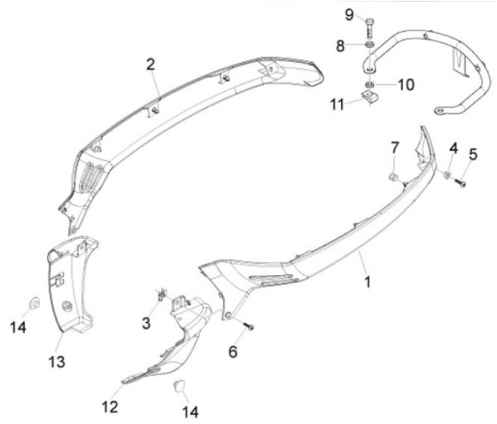 Carénage latéral droite -PIAGGIO- Vespa LX, LXV - pas peint