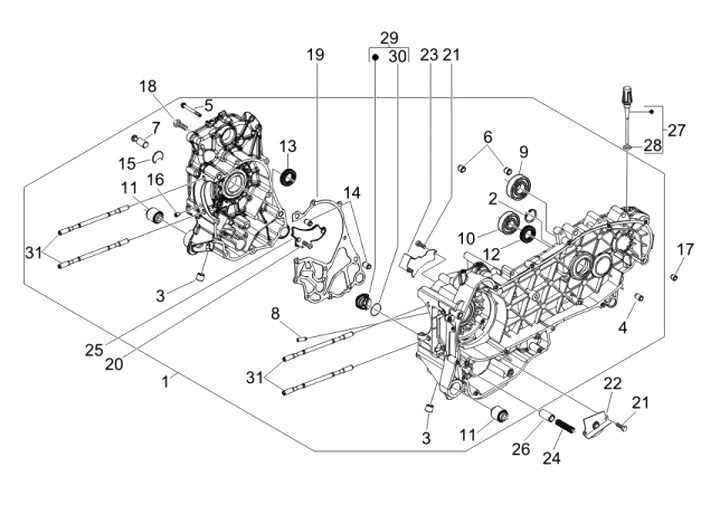 Joint de carter moteur -PIAGGIO- Vespa GT 250 (ZAPM45102), Vespa GT L 125 (ZAPM31101), Vespa GT L 200 (ZAPM31200), Vespa GTS 125 (ZAPM31300), Vespa GTS 250 (ZAPM45100, ZAPM45101), Vespa GTS 300 (ZAPM45200, ZAPM45202, ZAPMA3300), Vespa GTS HPE 300 (ZAPMD31