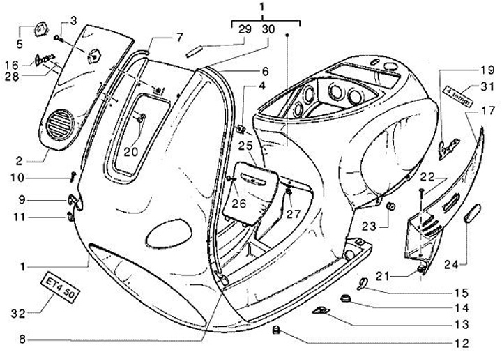 Entourage de tablier -PIAGGIO- ET2, ET4 - gauche