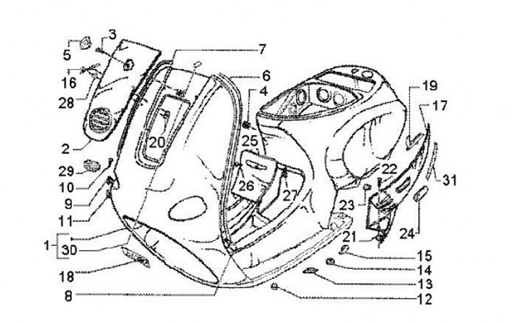 Entourage de tablier -PIAGGIO- ET2, ET4 - gauche