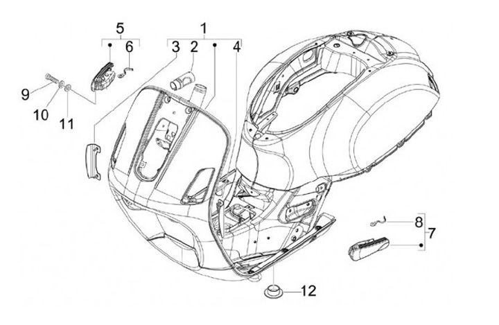 Bouchon en caoutchouc pour le cadre (en bas) -PIAGGIO- Vespa GT 250 (ZAPM45102), Vespa GT L 125 (ZAPM31100, ZAPM31101), Vespa GT L 200 (ZAPM31200), Vespa GTS 125 (ZAPM31300, ZAPMA3100, ZAPMA3200, ZAPMA3700), Vespa GTS 150 (ZAPMA3200, ZAPMA3100), Vespa GTS