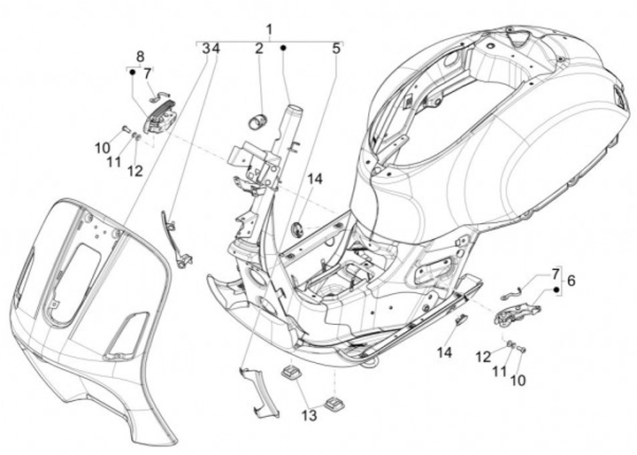 Tablier -PIAGGIO- Vespa GT 250 (ZAPM45102), Vespa GT L 125 (ZAPM31101), Vespa GTS 125 (ZAPM31300, ZAPMA3100, ZAPMA3200), Vespa GTS 150 (ZAPMA3200, ZAPMA3100), Vespa GTS 250 (ZAPM45100, ZAPM45101), Vespa GTS 300 (ZAPM45200, ZAPM45202, ZAPMA3300), Vespa GTS