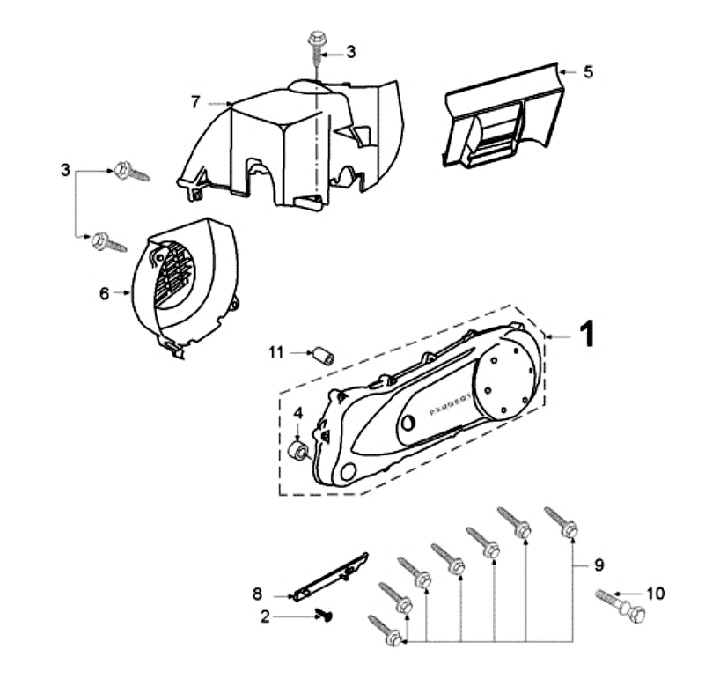 Cache turbine -PEUGEOT- Peugeot 50cc AC (cylindre vertical) - SPEEDFIGHT1 50 cc AC, SPEEDFIGHT2 50 cc AC, TKR50, TREKKER50, VIVACITY50, ELYSEO50, SQUAB50, SV50, ZENITH50, BUXY50, ELYSTAR50, LOOXOR50, SPEEDAKE