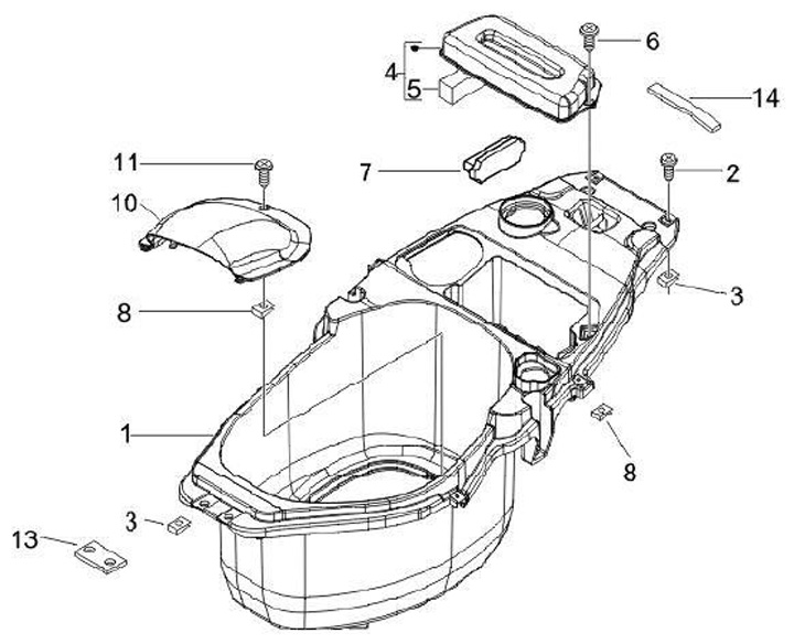 Compartiment pour casque -PIAGGIO- Piaggio Zip II 100 (LBMM25200), Piaggio Zip II 125 (ZAPM25000), Piaggio Zip II 50 (ZAPC25000, LBMC25C, LBMC25E, LBMC25C00, LBMC25D0), Piaggio Zip II SP 50 (ZAPC25000, ZAPC25600), Piaggio Zip SP 50 (ZAPC11000)