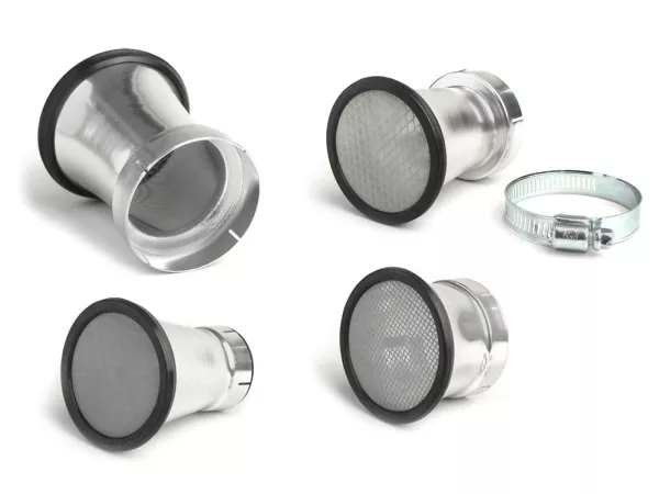 BGM PRO Entonnoir d'aspiration, qui peut être utilisé soit complètement ouvert, soit avec le filtre à air fourni. La conception de l'espace devant le carburateur a une influence considérable sur les performances obtenues.