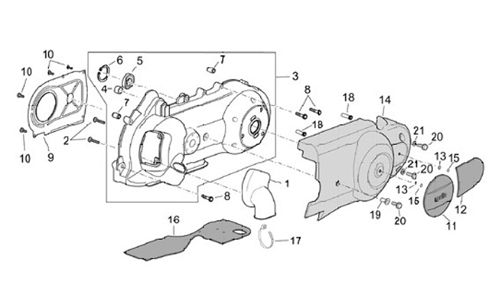 Couvercle de variateur -MALOSSI-, aluminium, anodisé dur- Moteur Piaggio Leader/Quasar - ET4, LX/LXV125-150, S125-150, GT/GTS/GTV/GTL 125-300, Royal Alloy GP, TG - noir