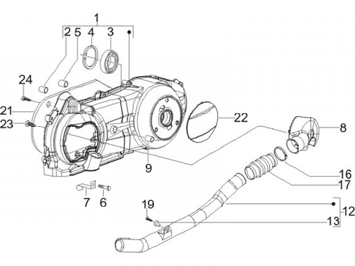 Capot de variateur -PIAGGIO- Vespa GTL 125-200, GTS 125, GTV 125, LX 125-150, LXV 125, S 125-150, Piaggio Fly 125-150, Liberty 125-200, TPH 125, Gilera DNA 125-180, Runner VX 125, Runner VXR 200, Derbi GP1 125, Boulevard 125-200